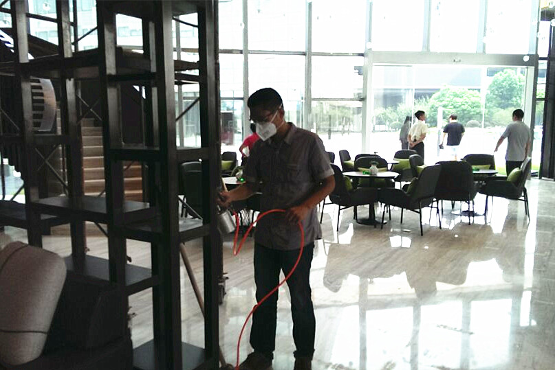 針對其結構特點、污染情況,我公司拍工作人員前往辦公區域現場考察,回公司同工作人員研究了完整的施工方案,針對污染源,易散發甲醛的家具,等有害物質的污染源,重點治理,尤其對地面地板,進行反復施工,對粉刷的墻面,使用我公司研發的利純納米光觸媒,甲醛清除劑、苯清除劑、異味清除劑,針對不同污染物,做分別處理。經治理后,客戶員工反應感覺氣味明顯消除,為業主清理甲醛,還顧客一個安全,健康的生活環境是我們全體工作人員的責任。